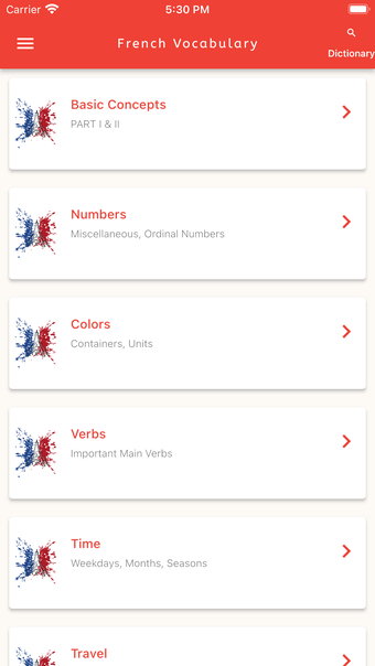 تعلم مفردات اللغة الفرنسية هو تطبيق iPhone تم تطويره بواسطة علي عمر، متاح مجانًا في فئة التعليم والمراجعة تحت قسم الكتب. يقدم هذا التطبيق طريقة شاملة لتعلم مفردات اللغة الفرنسية من اللغة الإنجليزية ترتيبيًا، بالإضافة إلى قاموس إنجليزي-فرنسي.